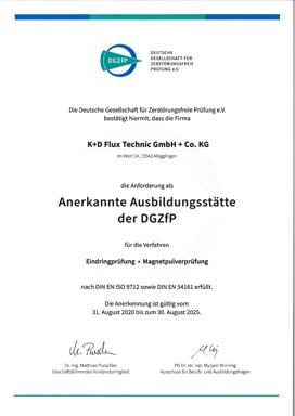 We are recognized training center of the DGZfP.