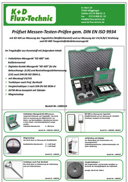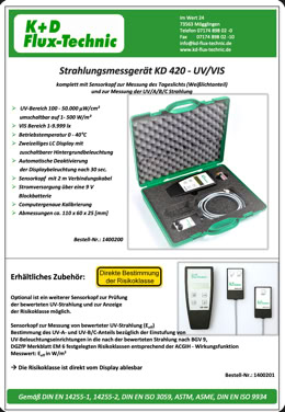 • Messung der UV-Strahlungsintensität gemäß DIN EN ISO 3059